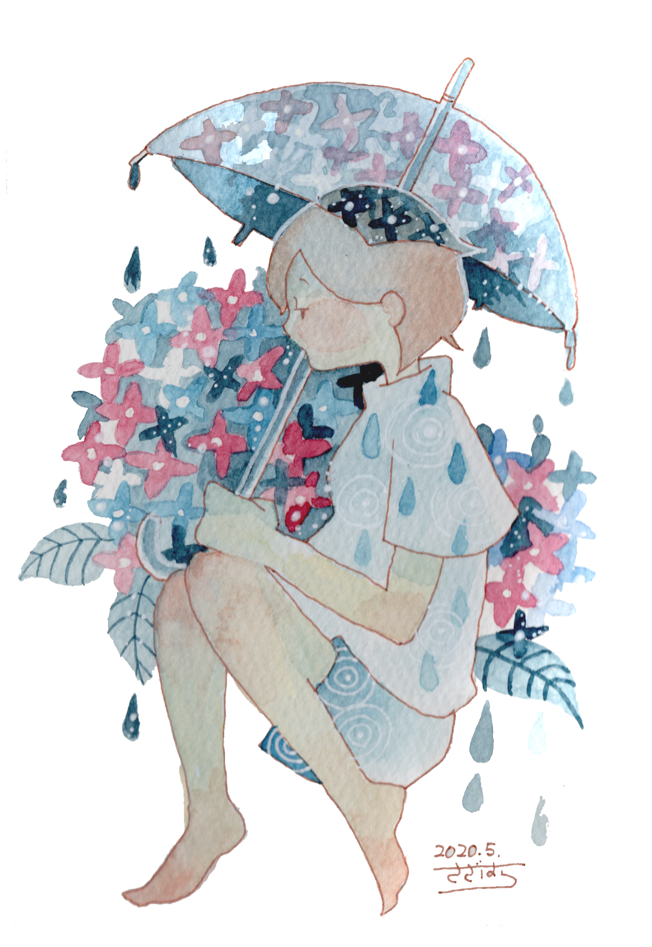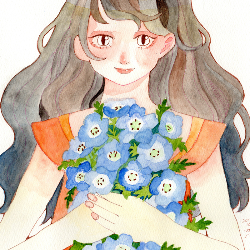 透明水彩にて着色。